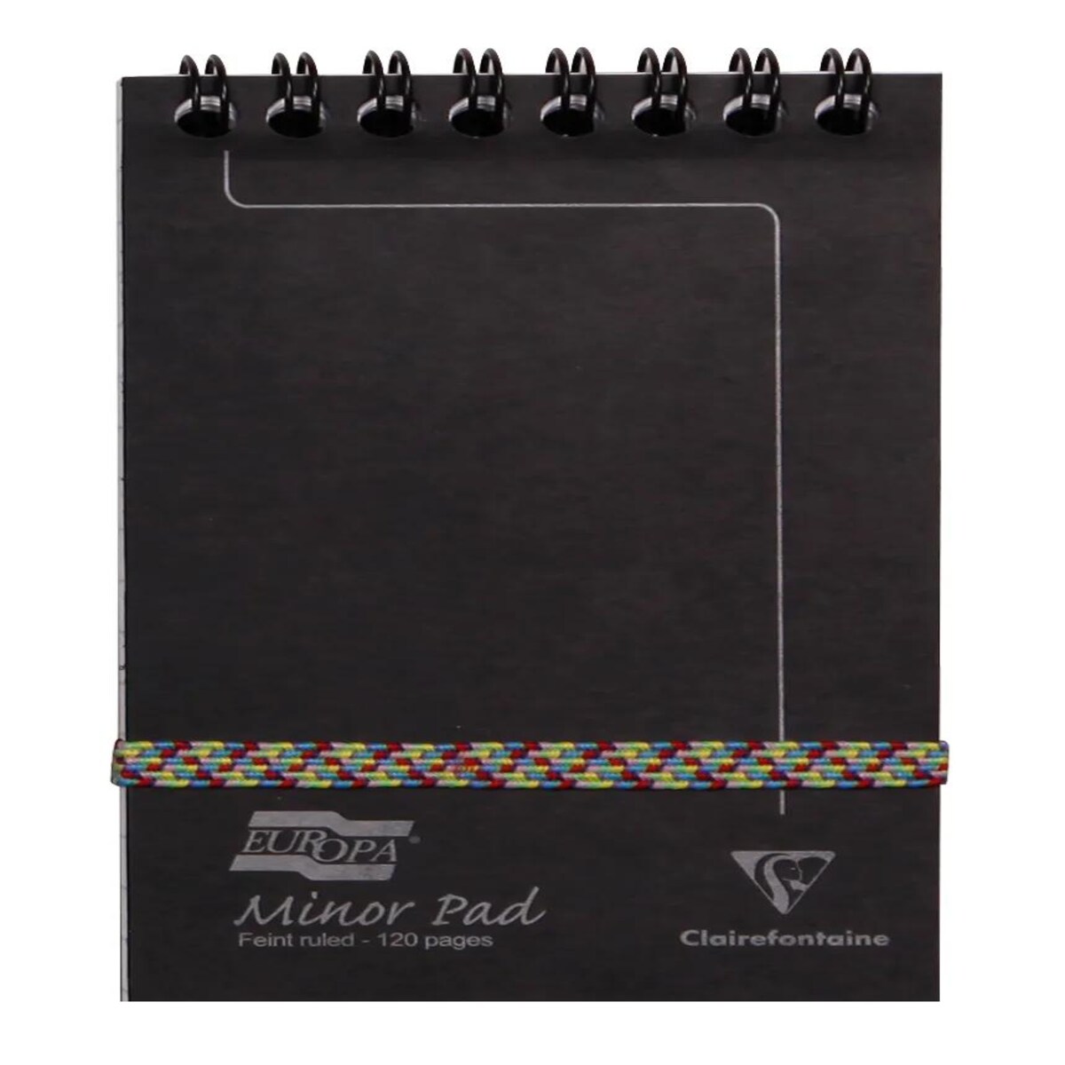 Clairefontaine 10x Europa Minor Pad, Block mit Doppelspirale kopfseitig 7,6x12cm, 60 Blatt abtrennbar liniert - Schwarz 3012Z