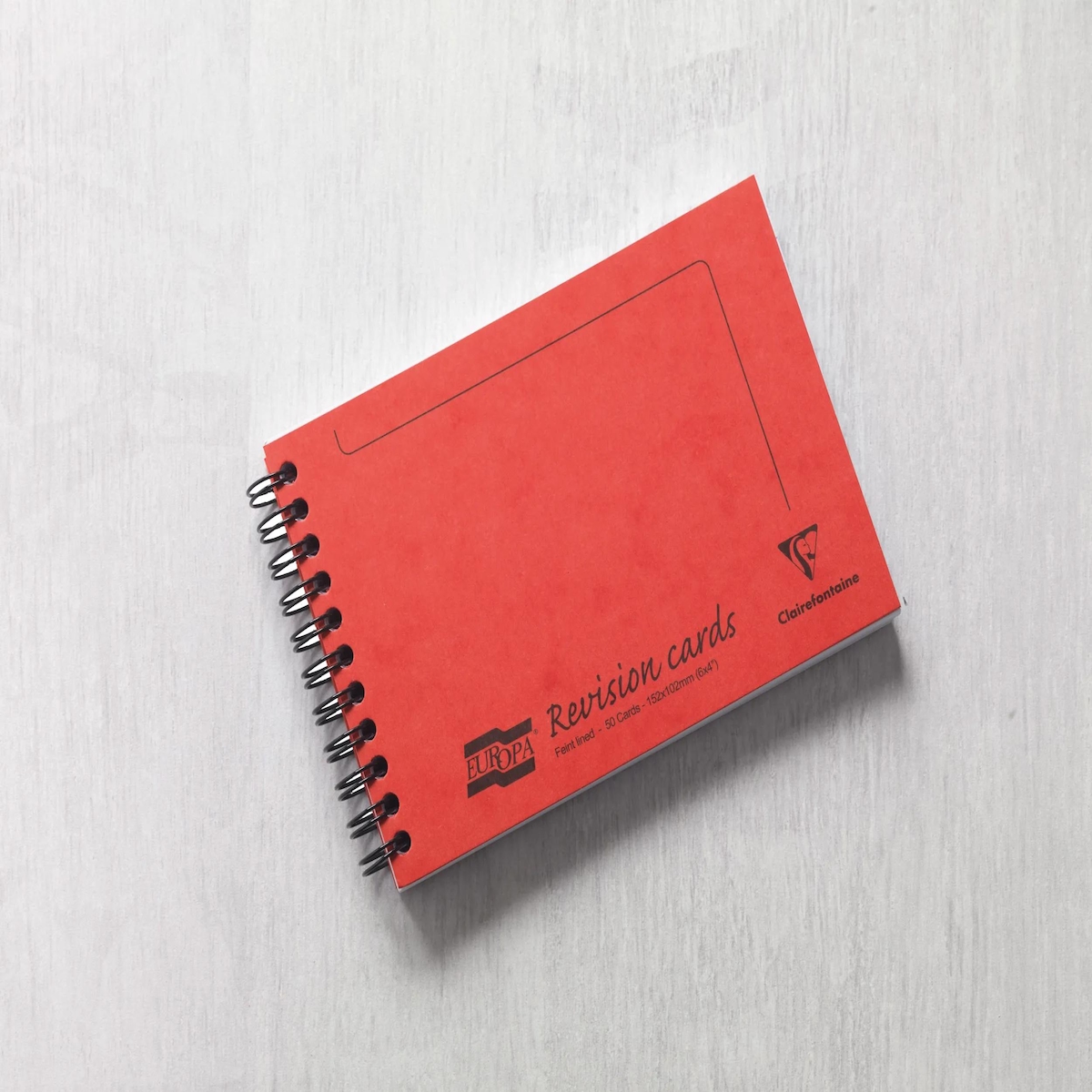 Clairefontaine 10x Revision Cards, Block mit 50 Karteikarten 15,2x10,2 cm, liniert, 160g - Rot 3002Z