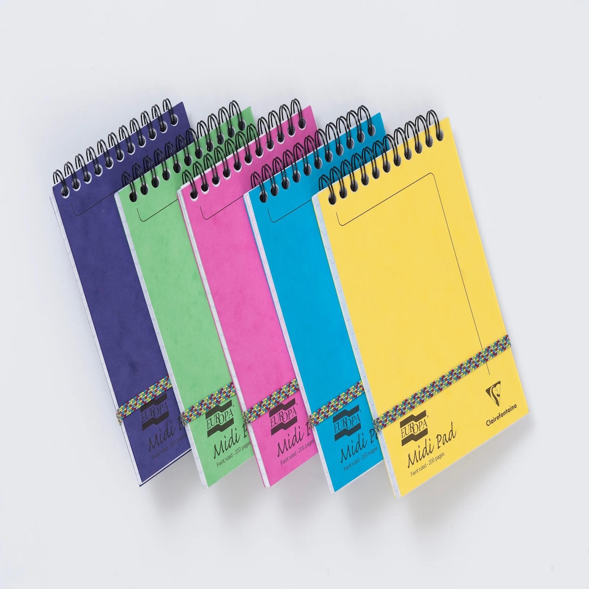 Clairefontaine 10x Europa Midi Pad, Block mit Doppelspirale kopfseitig 10,2x15,2cm, 100 Blatt liniert - Sortierung C 4937Z