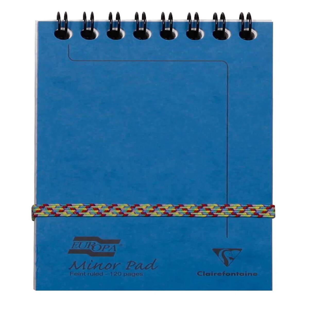 Clairefontaine 10x Europa Minor Pad, Block mit Doppelspirale kopfseitig 7,6x12cm, 60 Blatt abtrennbar liniert - Blau 482/1154Z