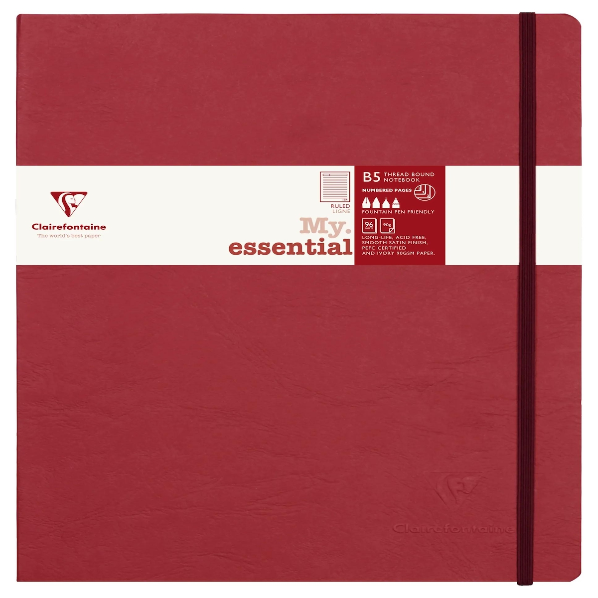 Clairefontaine 5x My.Essential Age Bag, Notizbuch B5 (19x25 cm) mit Fadenbindung, 96 Blatt nummeriert, liniert, Papier elfenbein 90g - Rot 794462C