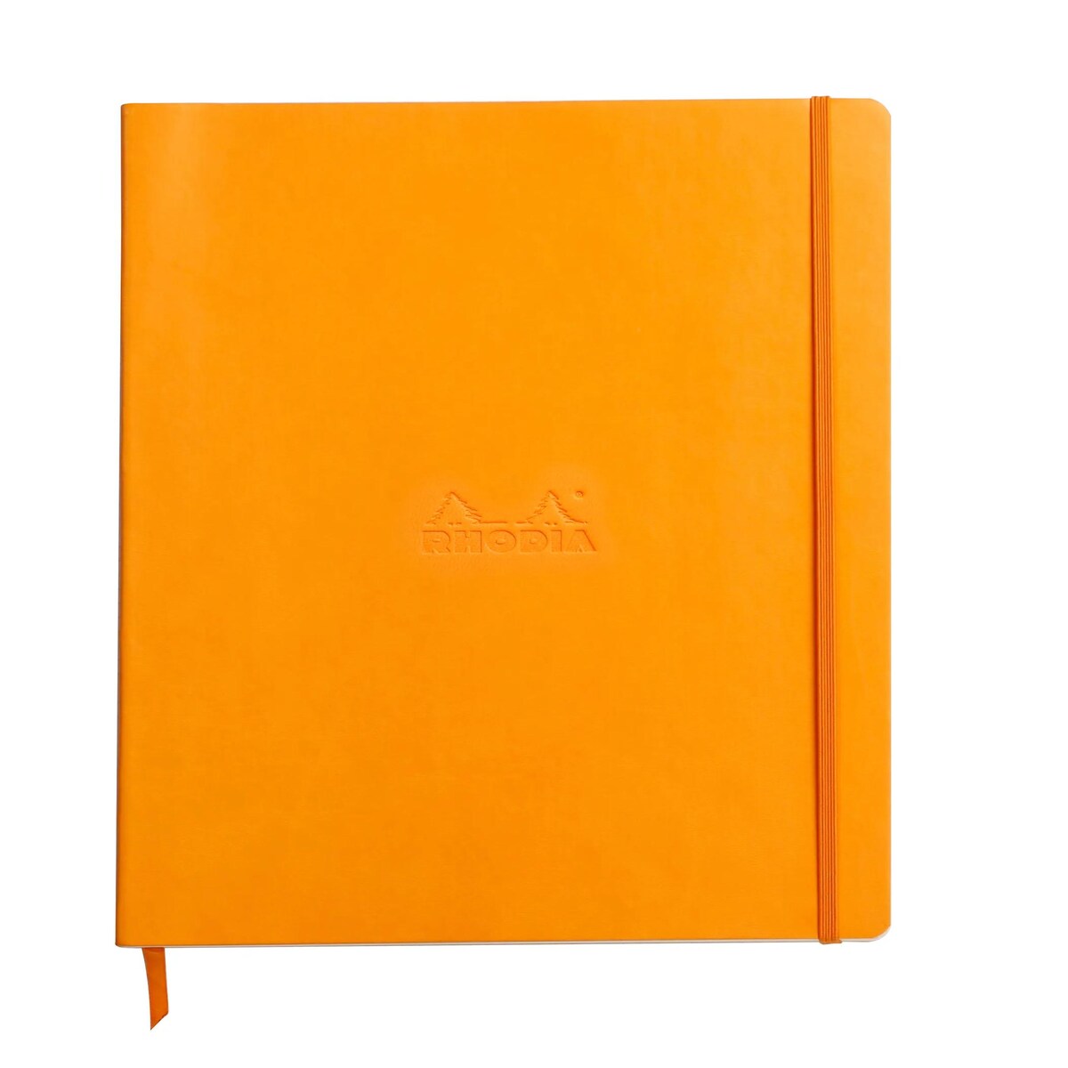 Rhodiarama flexibles Notizbuch A4+, 80 Blatt liniert mit Kopfleiste, Papier elfenbein 90g, mit Gummizugverschluss - Orange 117715C
