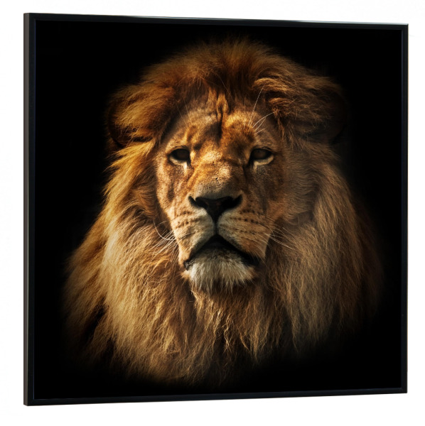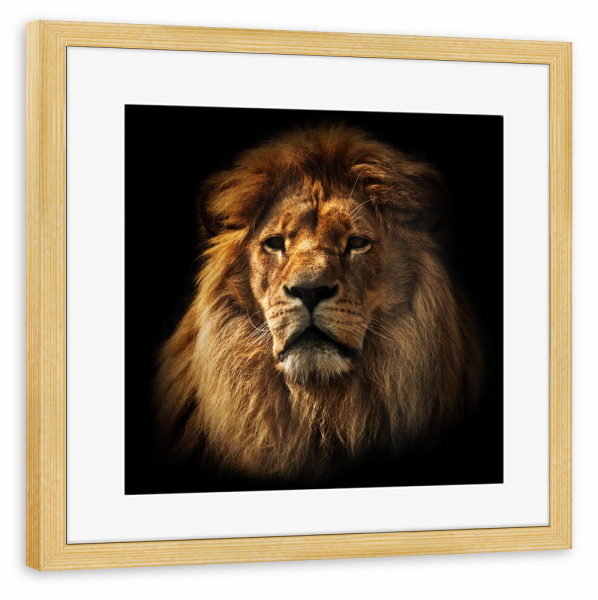 Poster mit schwarzem Rahmen 30x30 cm "Lion portrait with rich mane on black" artboxONE - Reise / Afrika