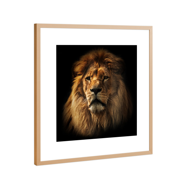 Poster mit Rahmen Kupfer "Lion portrait with rich mane on black" artboxONE - Reise / Afrika