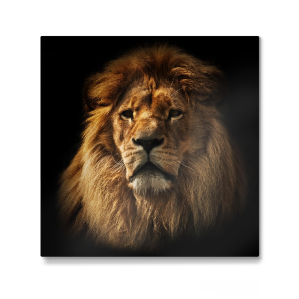 Alu-Dibond "Lion portrait with rich mane on black" 30x30 cm artboxONE
