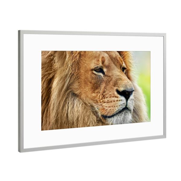 Poster mit Rahmen Silber "Lion portrait with rich mane on savanna, safari" artboxONE - Tiere,Reise / Afrika