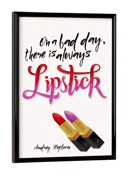 Poster mit schwarzem Rahmen "Lippenstift hilft garantiert" artboxONE - Typografie,Menschen,Lustig