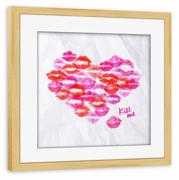 Poster mit Rahmen kiefer "Heart lipstick kiss" artboxONE - Comic,Fashion,Festivals