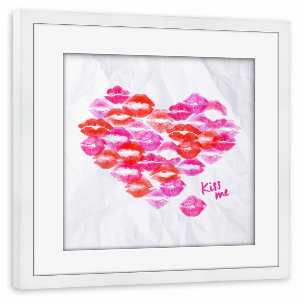 Poster mit Rahmen weiß "Heart lipstick kiss" artboxONE - Comic,Fashion,Festivals