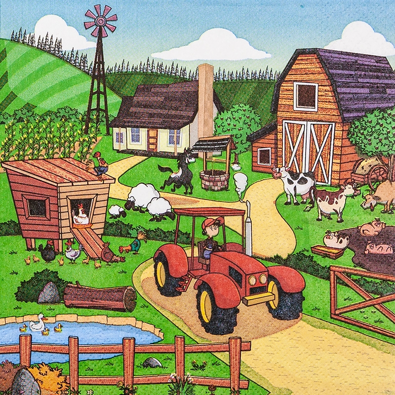 Home Fashion, Little Farm, Lunch-Servietten aufgefaltetes Maß 33 cm x 33 cm, im Viertelfalz, 20 Stück pro Pack, 12 Pack pro Karton