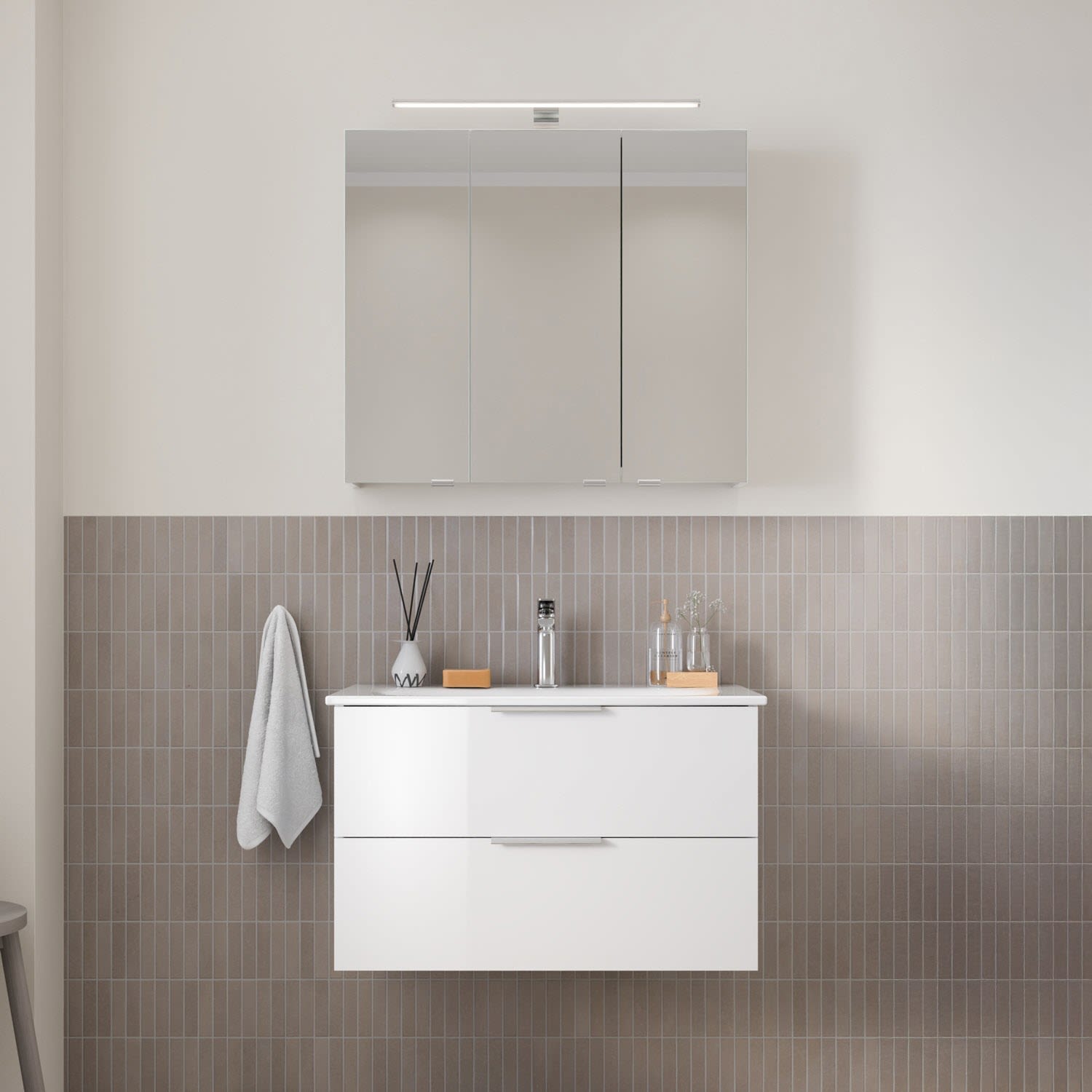 Steinkamp Living 2.0 / GROHE Essence Badmöbel Set 80 cm mit Spiegelschrank, Badmöbel,