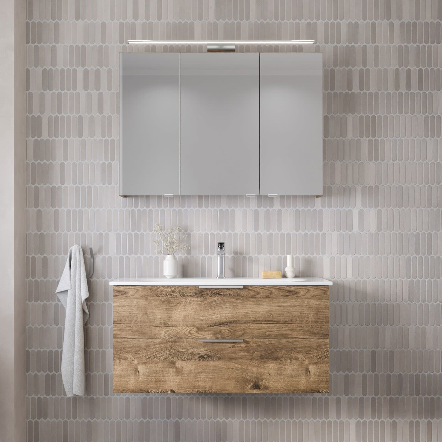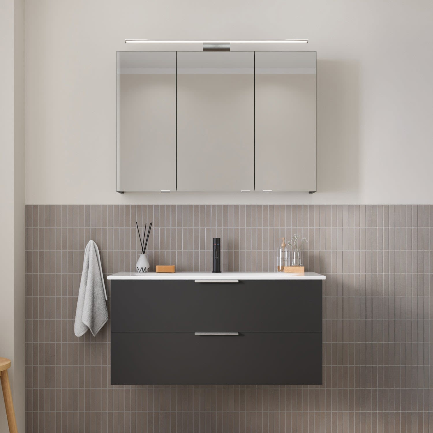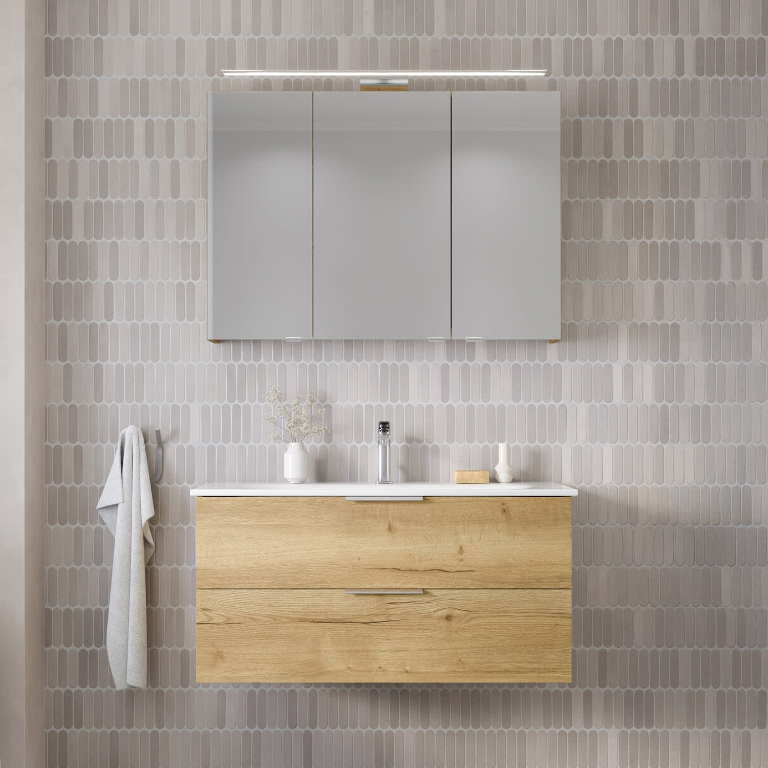 Steinkamp Living 2.0 / GROHE Essence Badmöbel Set 100 cm mit Spiegelschrank, Badmöbel,