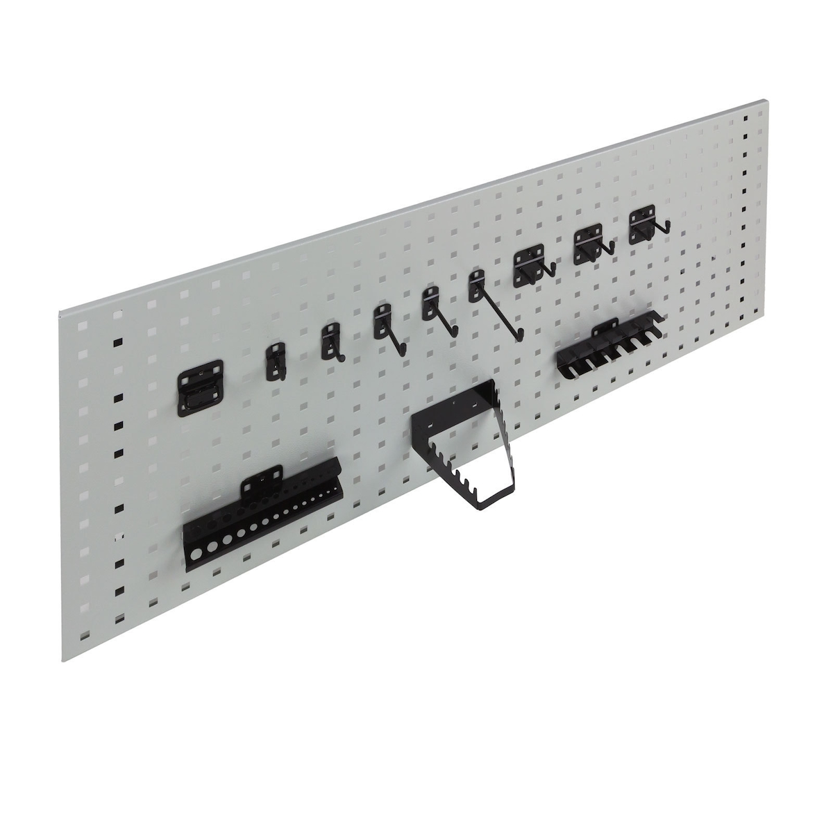 Hakensatz Werkzeughalter für Lochplatte 18 Stück | Pulverbeschichtet | Weissaluminium