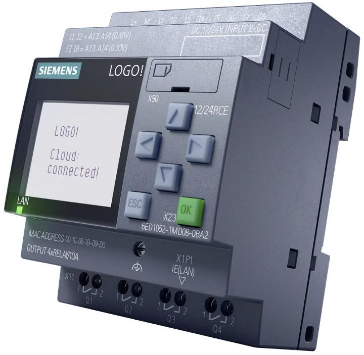 Siemens 6ED1052-1MD08-0BA2 LOGO! 12/24RCE, Logikmodul, Display SV/E/A: 12/DC 24V/Relais, 8DE (4AE)/4DA, SP. 400 Blöcke, modular erweiterbar, Ethernet,
