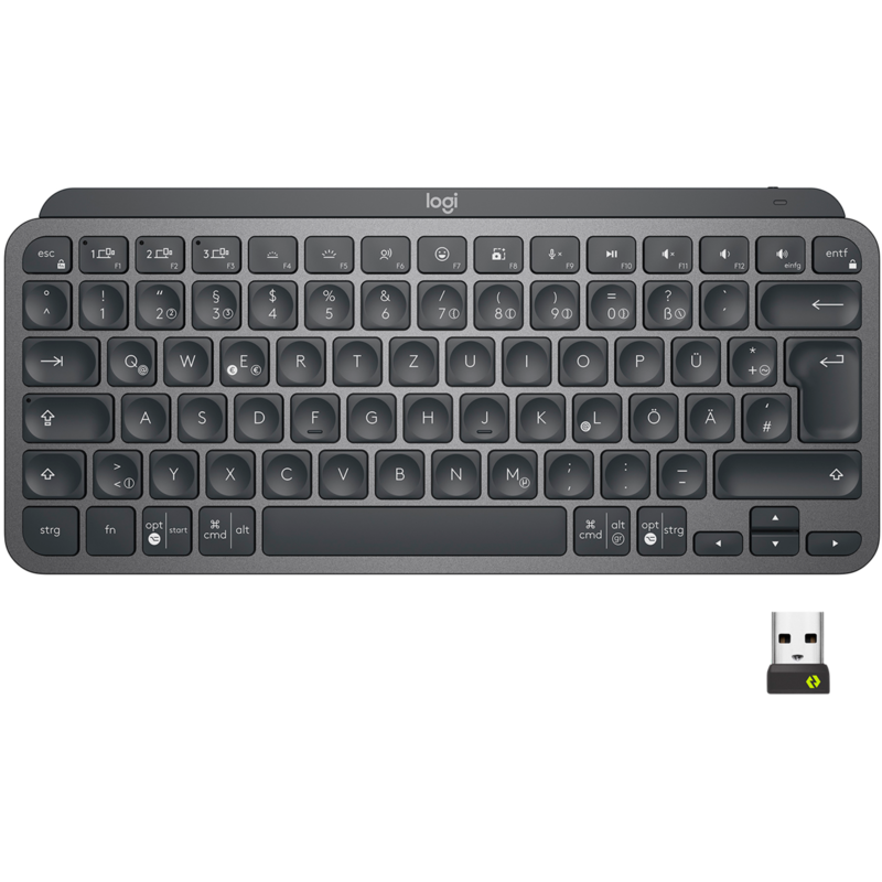 Logitech Master MX Keys Mini, Mini, Kabellos, RF Wireless + Bluetooth, QWERTY, LED, Graphit