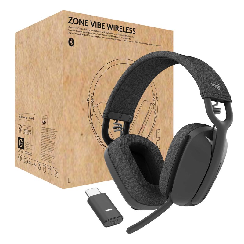 Logitech Zone Vibe Wireless for Business - Stereo Headset, Grafit, USB-A/-C, Bluetooth, Zertifiziert für Microsoft Teams