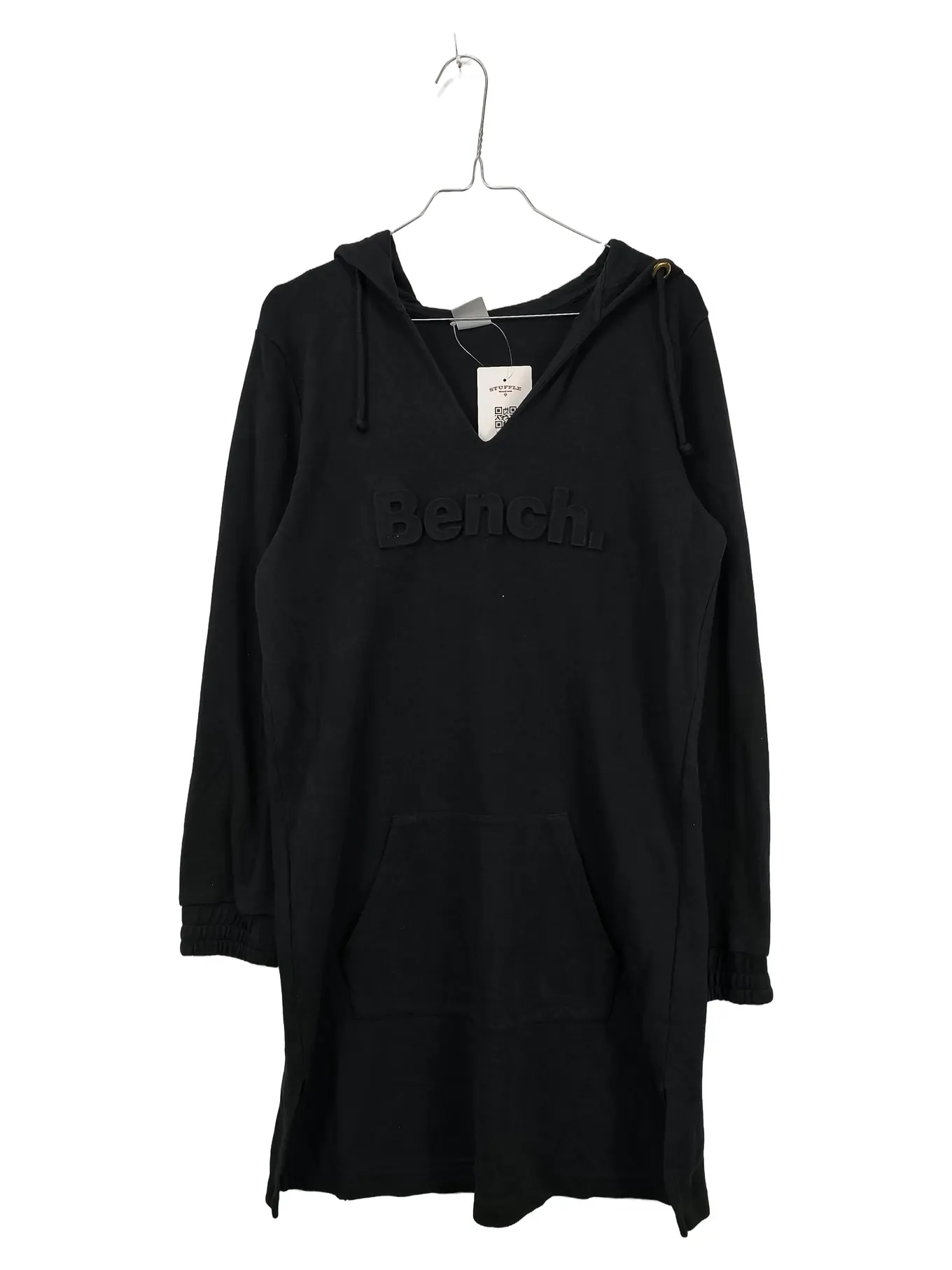 BENCH. Bench Damen Kapuzenkleid Hoodie Longpullover Gr. 40/42 Schwarz Modal Mix Logo