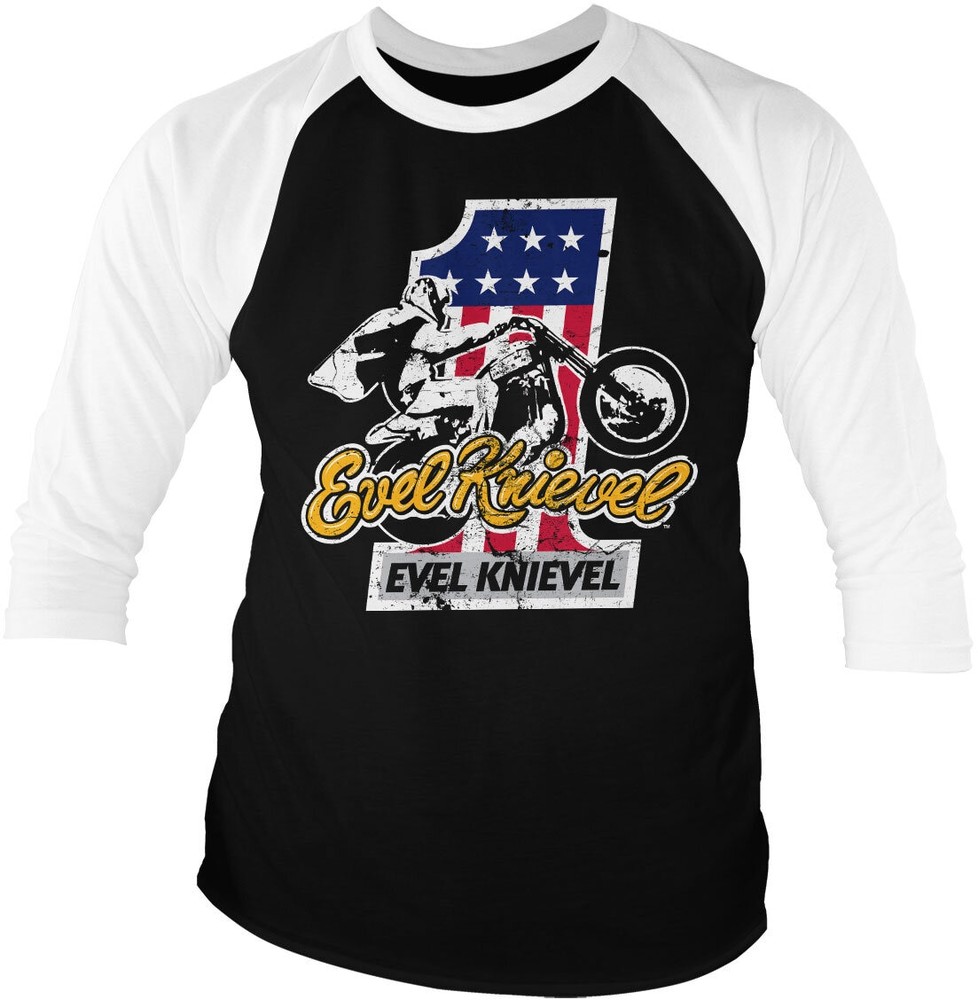 Evel Knievel No. 1 Baseball 3/4 Sleeve Tee Longsleeve Weiß-Schwarz - Herren / Unisex