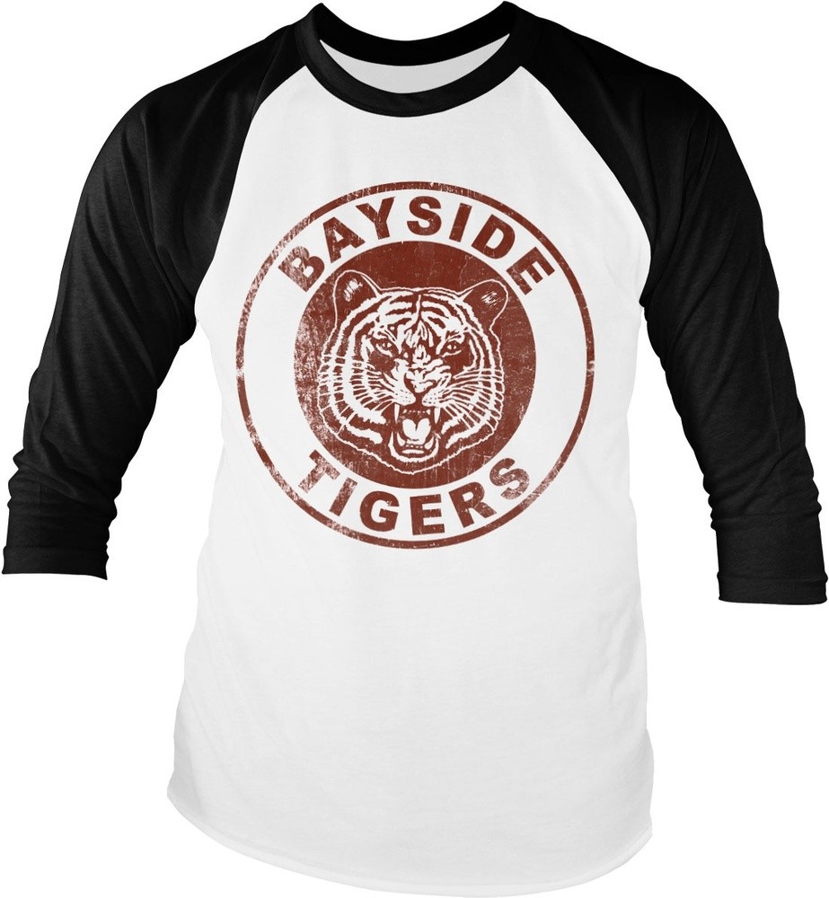 Saved By The Bell Bayside Tigers Washed Logo Baseball Longsleeve Tee Weiß-Schwarz - Herren / Unisex