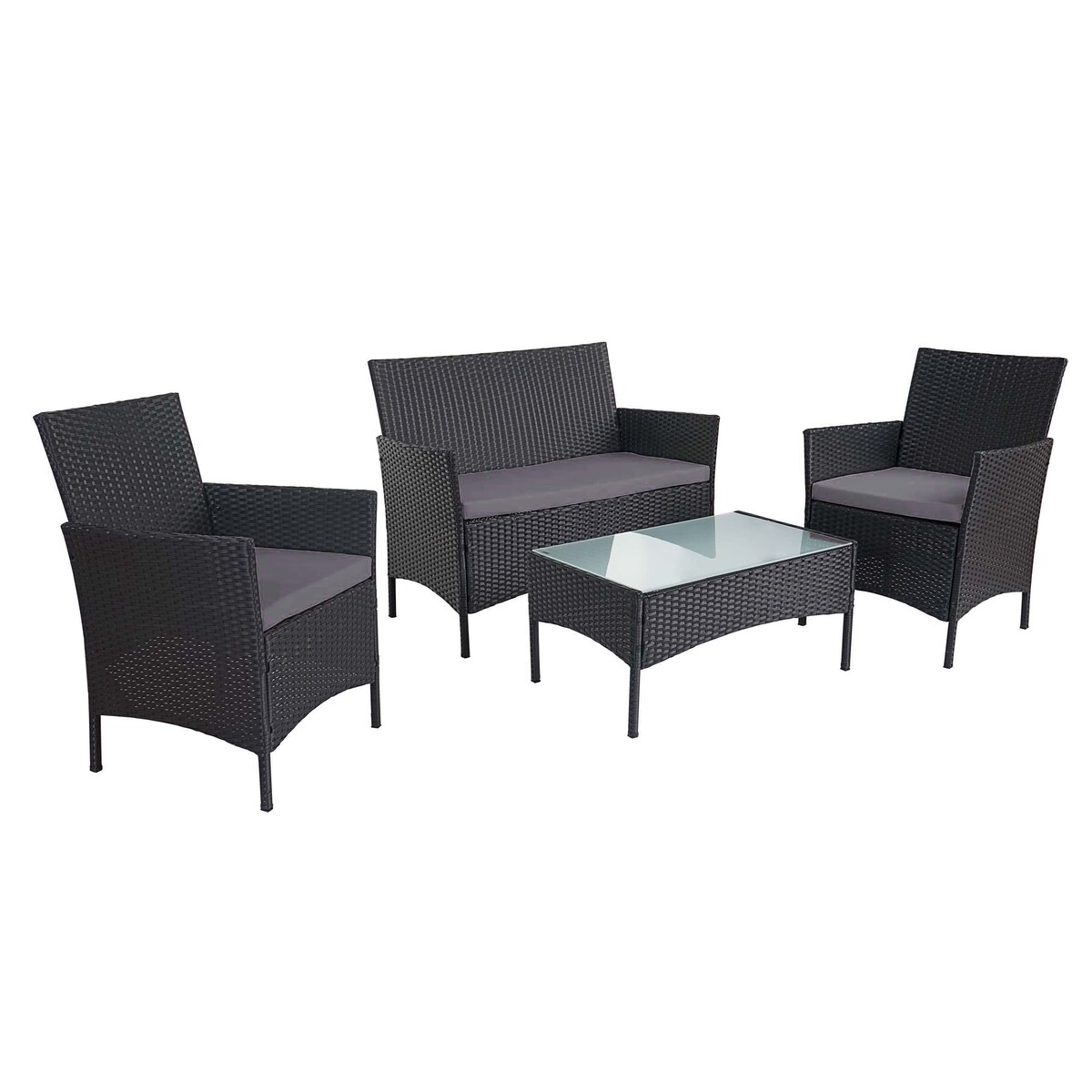BDW, Gartenmöbel-Set, 4 Personen Sofa, Stühle, Tisch, Lounge-Set, Grau