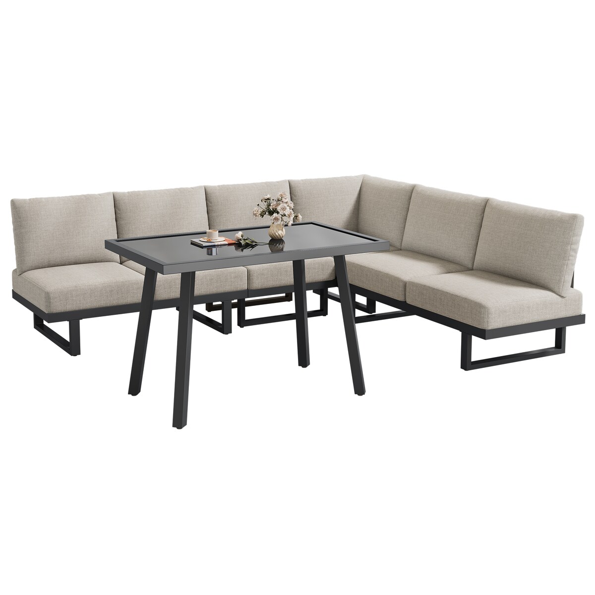 Merax Garten-Loungesessel-Set für 6 Personen, Ecksofa, Outdoor-Relaxbett, Verzinktes Eisen mit Seilgeflecht, Beige