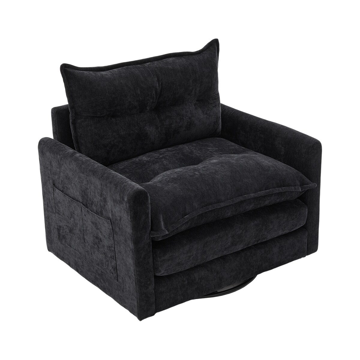 OKWISH Loungesessel Drehfunktion Schwarz 92x74x67 cm mit Armlehnen und Kissen, Chenille Bezug, Holzrahmen, 360 Grad drehbar, ergonomisch gepolstert