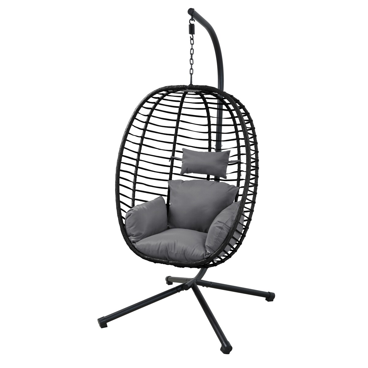 SVITA BELLY Hängesessel mit Gestell Loungesessel Hängesitz Hängestuhl klappbar Hängekorb Hängeschaukel Outdoorsessel Schwarz