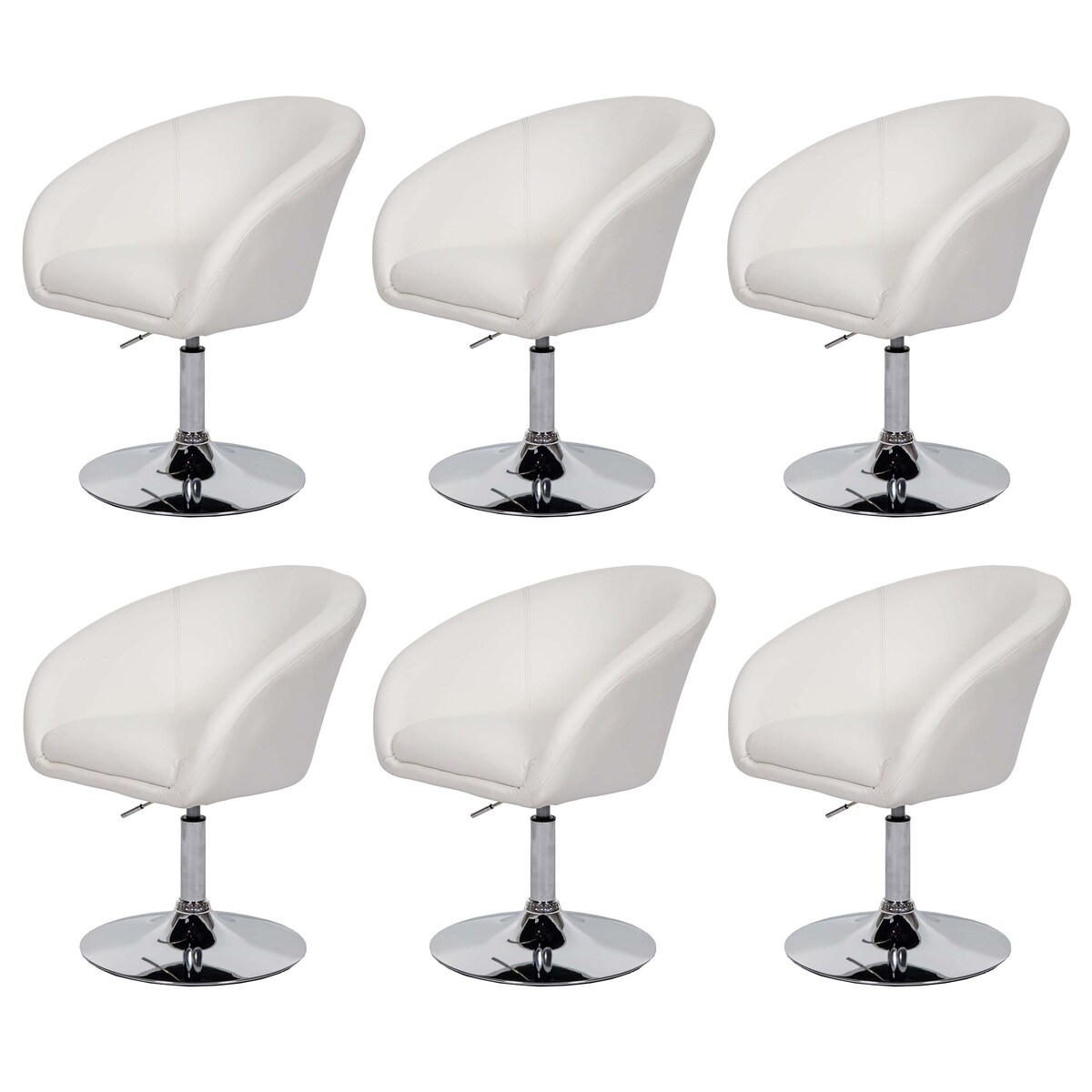 Mendler 6er-Set Esszimmerstuhl HWC-F19, Küchenstuhl Drehstuhl Loungesessel, drehbar höhenverstellbar ~ Kunstleder weiß