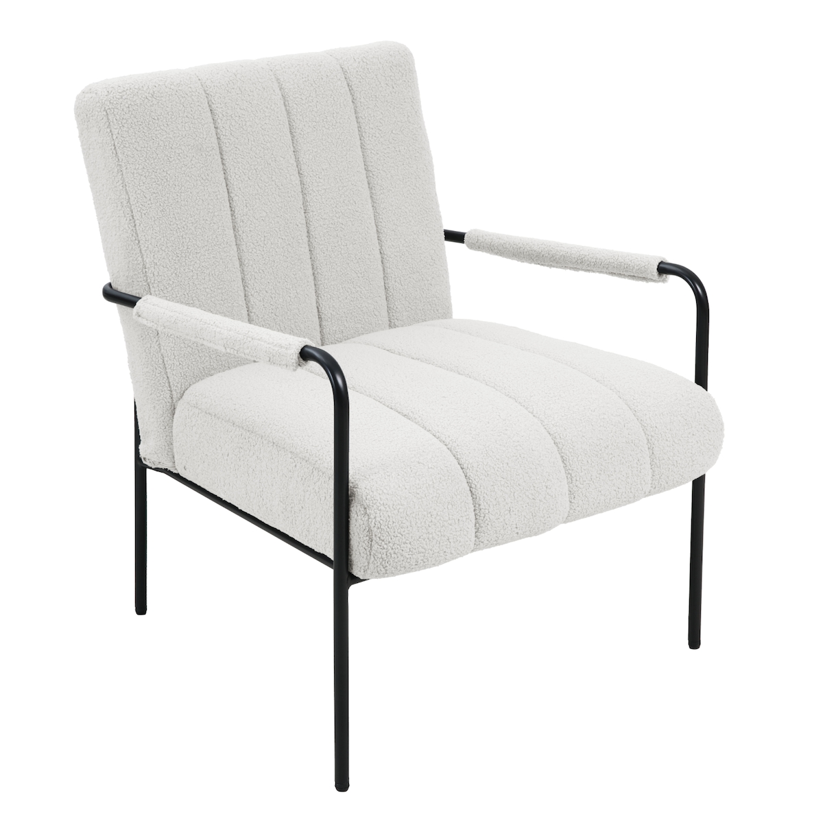 Yaheetech Clubsessel Loungesessel gepolstert, aus Bouclé-Gewebe, mit Fassrückenlehne, mit Metallbeinen, Weiß