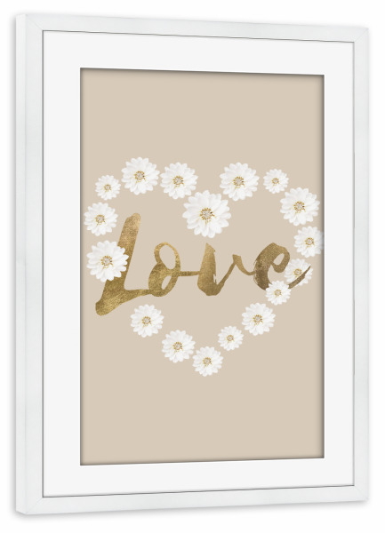 Poster mit Rahmen weiß "Flower in Love Gold" artboxONE - Natur,Floral,Liebe