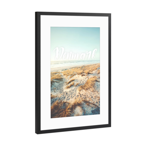 Poster mit Rahmen Schwarz (Metallic) "Denmark, I love you" artboxONE - Typografie,Natur,Reise,Reise / Strand und Meer