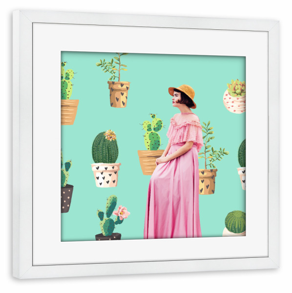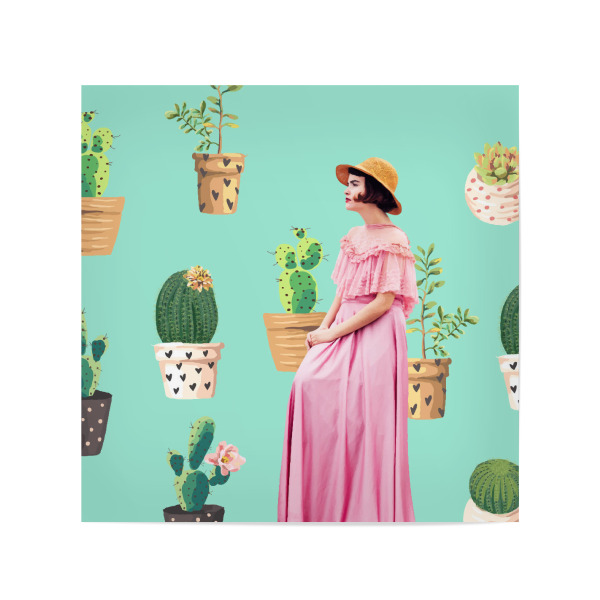 Poster 20x20 cm "Lady Love" artboxONE - Natur,Floral,Menschen - Kaktus,Porträt,Liebe,Frau,Natur,Illustration,Kaktus,Frau,Kleid,Kakteen,Pflanzen,Mode