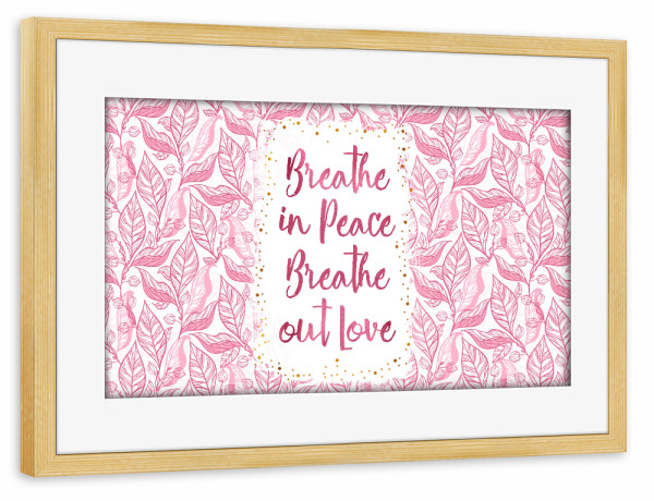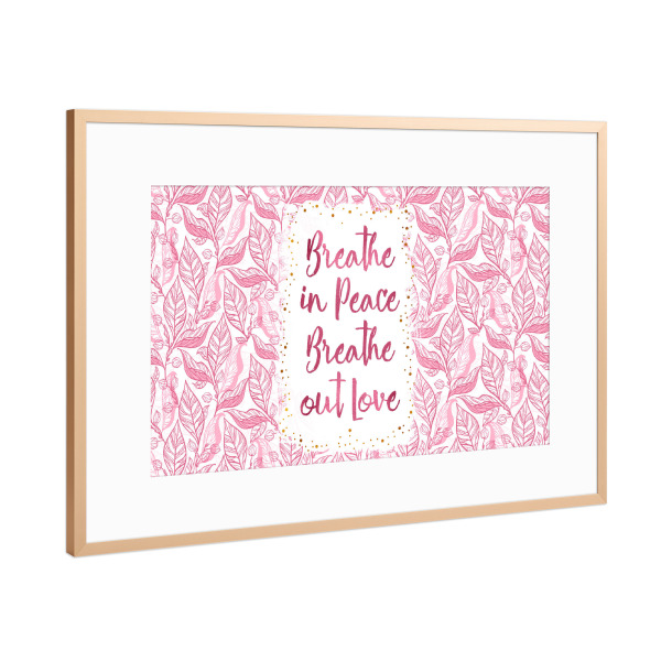 Poster mit Rahmen kiefer "Breathe in Peace Breathe out Love" artboxONE - Typografie,Natur,Floral,Liebe,Festivals