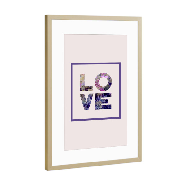 Poster mit Rahmen Gold "Succulent Uv LOVE" artboxONE - Typografie,Natur,Floral,Liebe,Ultraviolet