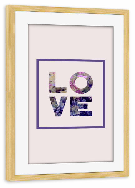 Poster mit Rahmen kiefer "Succulent Uv LOVE" artboxONE - Typografie,Natur,Floral,Liebe,Ultraviolet