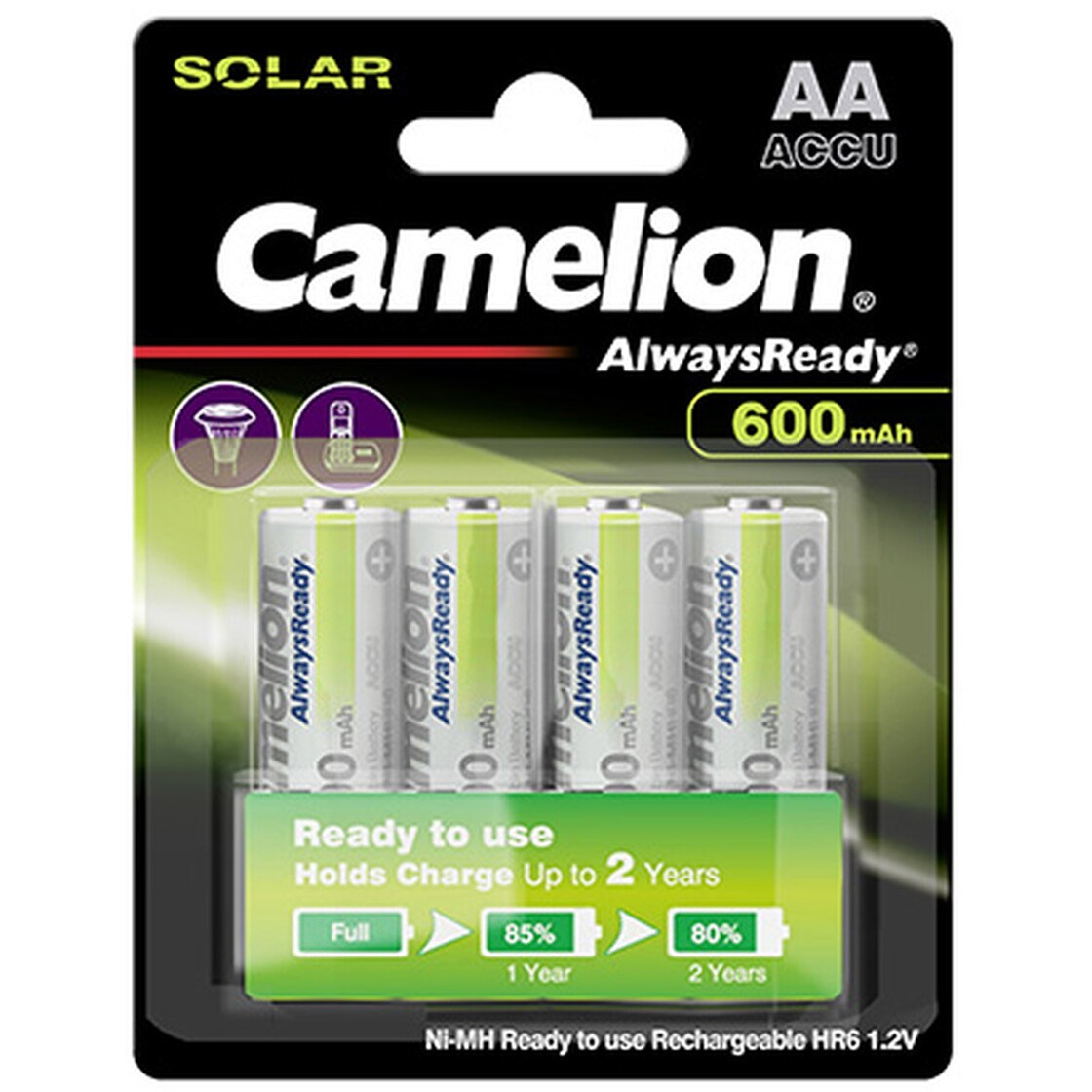 Camelion AA, Mignon LR6, HR6, NiMH Akku mit 1,2V 600mAh in 4er Blisterverpackung, Always Ready mit geringer Selbstentladung, Ready to Use Akku