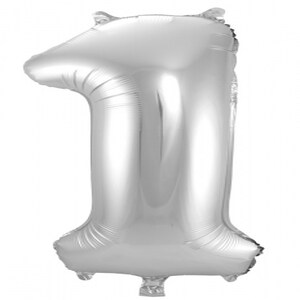 Folat XL Folienballon Zahl 1 in silber, 86 cm, 1 Stück, Helium Ballon (unbefüllt) - Luftballon