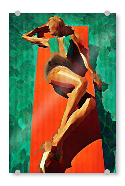 Acrylglasbild "Sun Bathing" artboxONE - Fashion - Luftmatratze,Frau,Beine,Akt,Schwimmbad,Pool,Wasser,Nackt,Beine,Frau