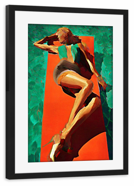 Poster mit Rahmen Schwarz (Metallic) "Sun Bathing" artboxONE - Fashion - Luftmatratze,Frau,Beine,Akt,Schwimmbad,Pool,Wasser,Nackt,Beine,Frau