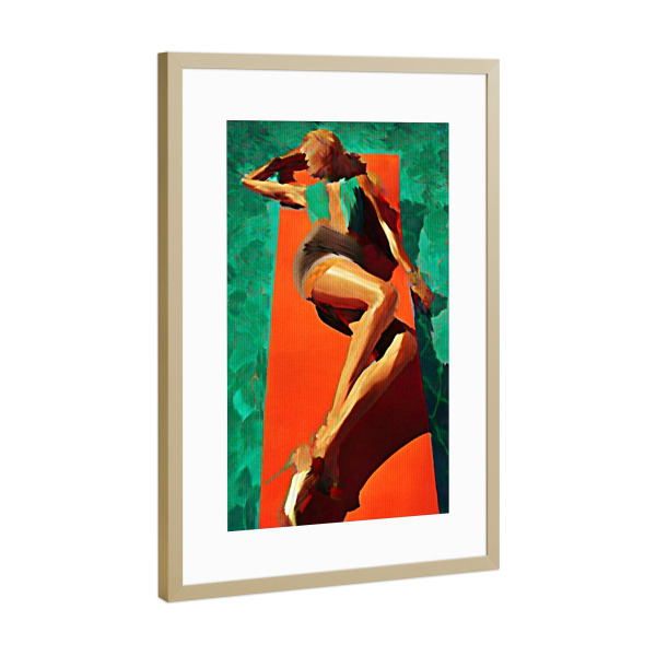 Poster mit Rahmen Gold "Sun Bathing" artboxONE - Fashion - Luftmatratze,Frau,Beine,Akt,Schwimmbad,Pool,Wasser,Nackt,Beine,Frau