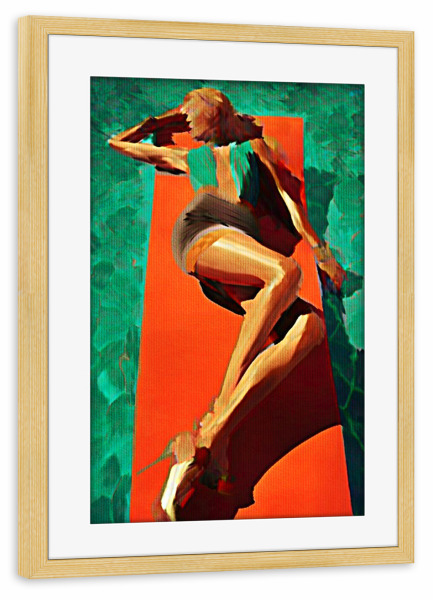 Poster mit Rahmen kiefer "Sun Bathing" artboxONE - Fashion - Luftmatratze,Frau,Beine,Akt,Schwimmbad,Pool,Wasser,Nackt,Beine,Frau
