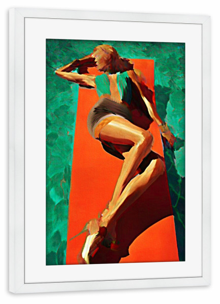Poster mit Rahmen weiß "Sun Bathing" artboxONE - Fashion - Luftmatratze,Frau,Beine,Akt,Schwimmbad,Pool,Wasser,Nackt,Beine,Frau