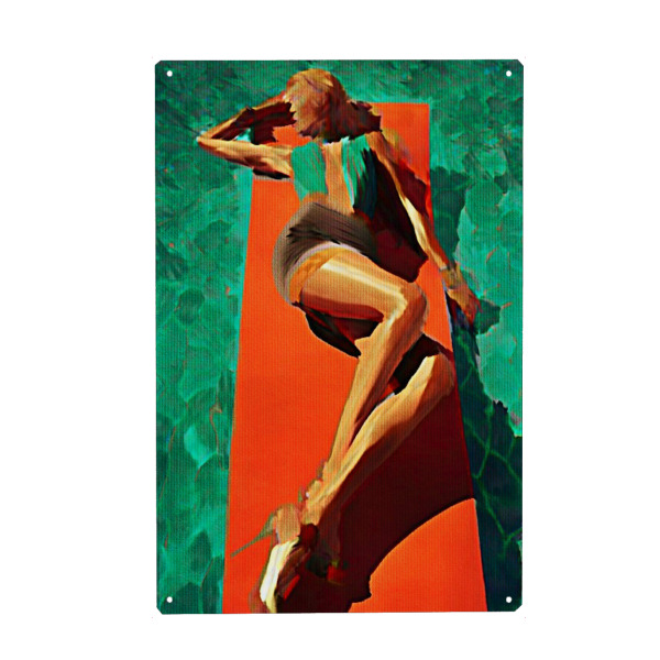 Metall Poster "Sun Bathing" artboxONE - Fashion - Luftmatratze,Frau,Beine,Akt,Schwimmbad,Pool,Wasser,Nackt,Beine,Frau - Blechschild