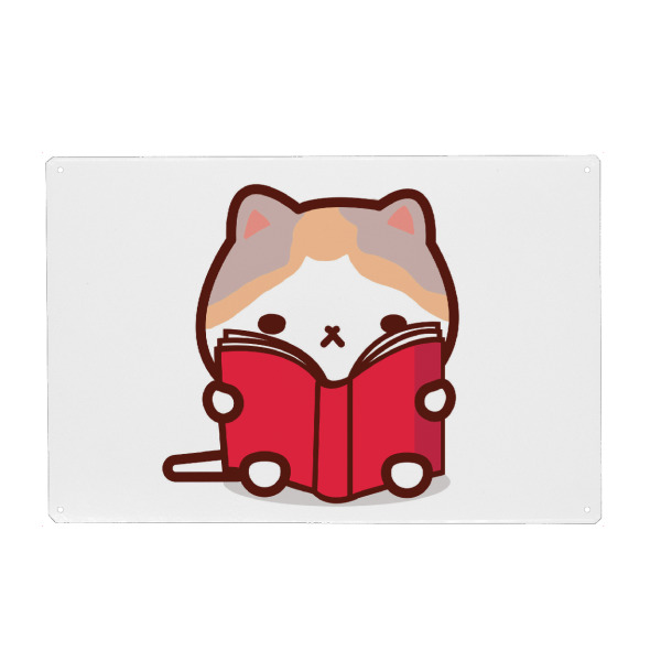 Metall Poster "Süße Katze liest ein Buch" artboxONE - Tiere,Lustig - Kawaii,Katzen,Niedlich,Bücher,Lesen,Bibliothek,Kätzchen,Bücherwurm - Blechschild