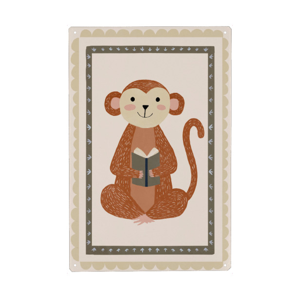 Metall Poster "Book Love (Monkey)" artboxONE - Für Kinder,Tiere - Affe,Tiere,Illustration,Kinderzimmer,Buch,Lesen,Bücher,Lustig - Blechschild