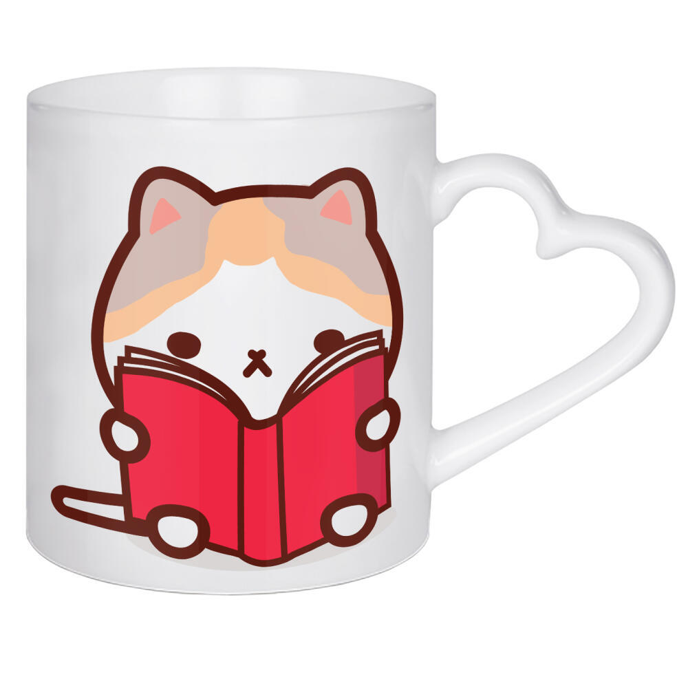 Herztasse "Süße Katze liest ein Buch" artboxONE - Tiere,Lustig - Kawaii,Katzen,Niedlich,Bücher,Lesen,Bibliothek,Kätzchen,Bücherwurm