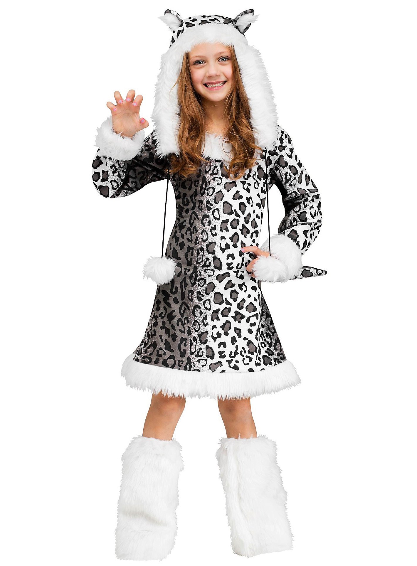 Schneeleopard Kostüm für Jugendliche | Tierkostüm für Mädchen | Größe: 140-152 | Farbe: Weiß