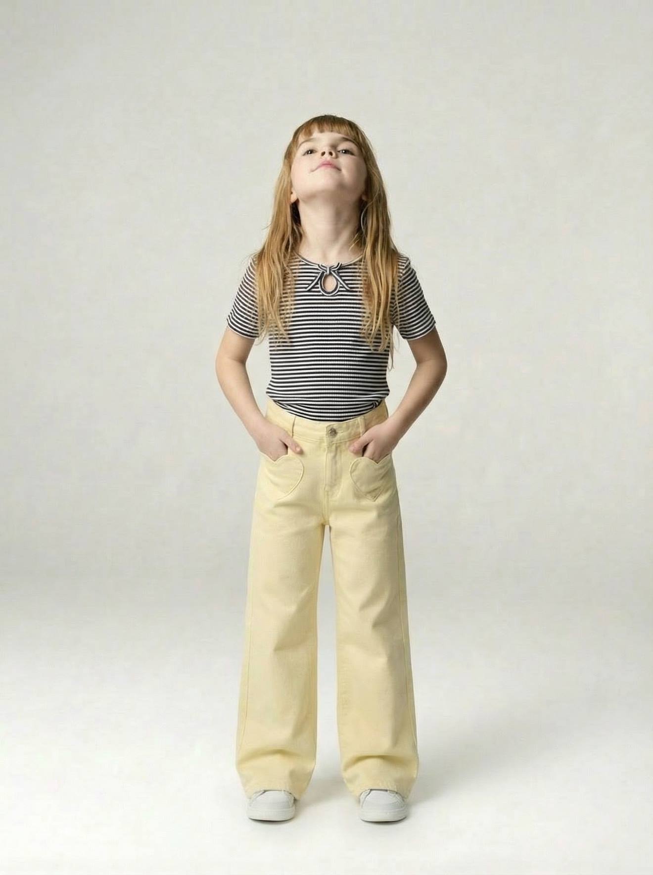 Weite Hose mit Herz-Taschen Mädchen, Bundweite verstellbar hellgelb Gr. 140 von vertbaudet