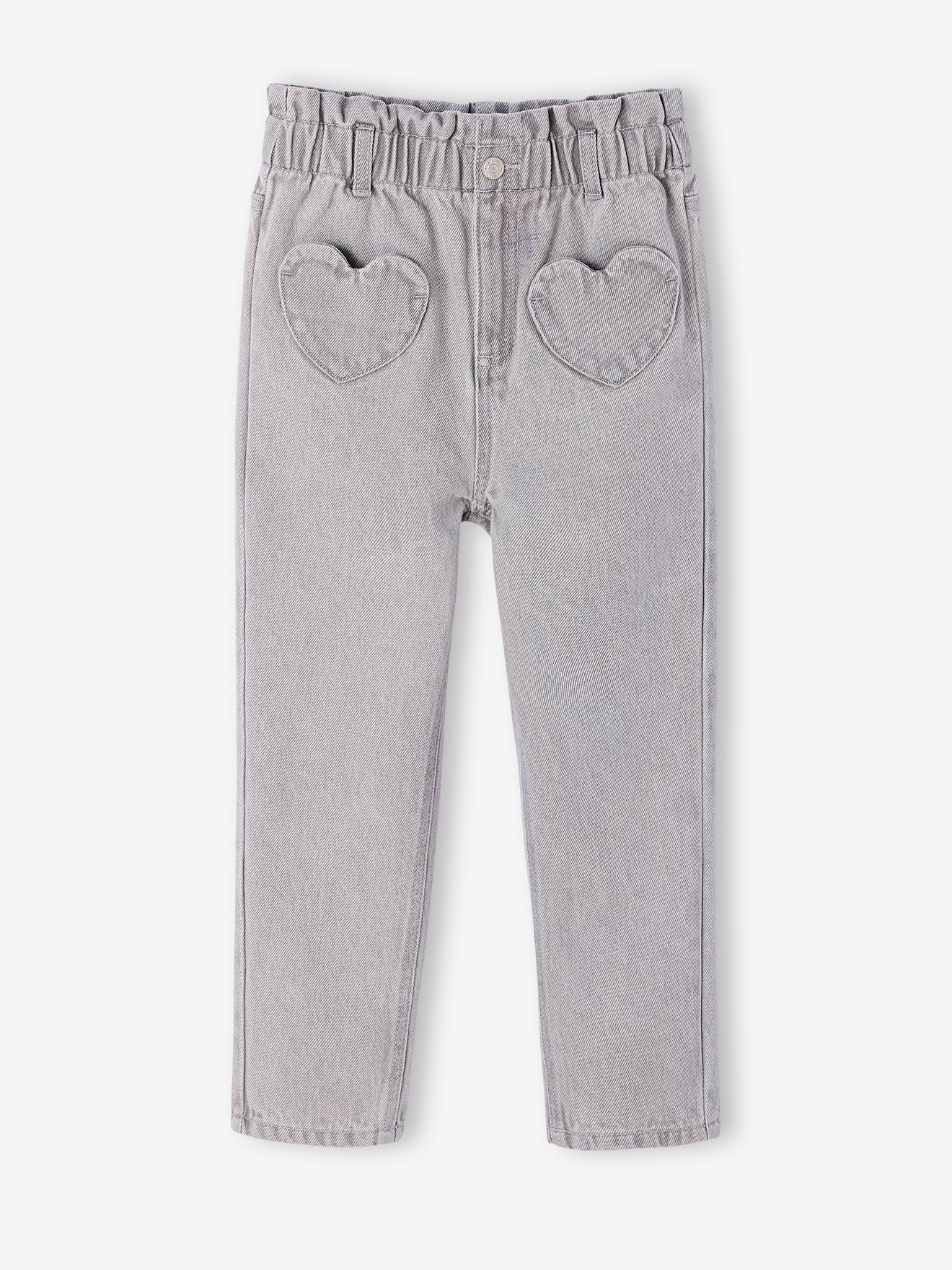 Mädchen Paperbag-Jeans mit Herz-Taschen grauer denim Gr. 128 von vertbaudet