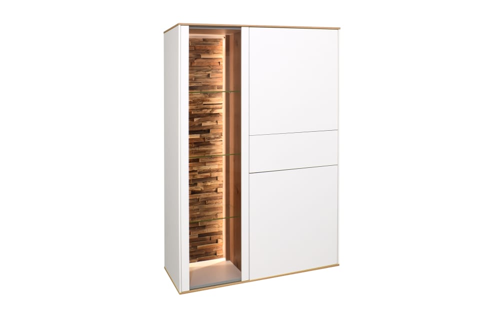 Mäusbacher Highboard Faro, weiß/Asteiche, 155 cm, inkl. Push-to-Open Funktion Holzdekor, Holz, Glas, Metall 101 cm